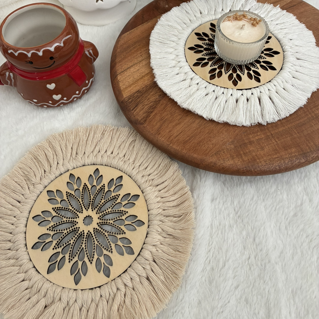 Ajoutez une touche chaleureuse et naturelle à votre intérieur grâce à ce magnifique sous-verre ou centre de table en macramé.